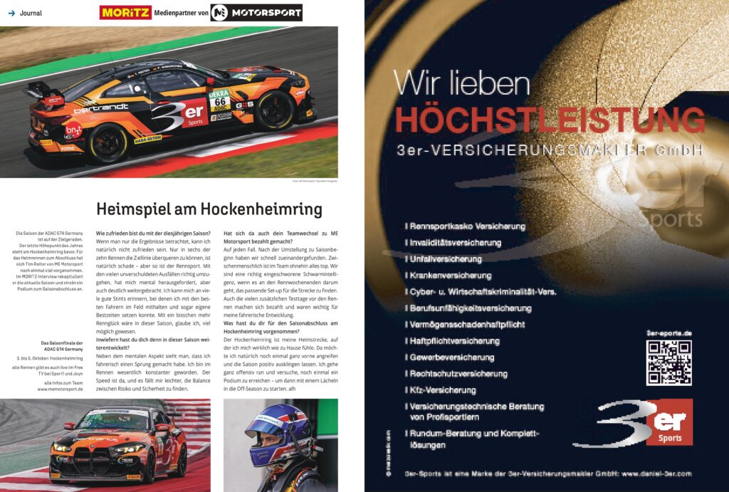 Okt. 01 2025 Heimspiel am Hockenheimring Moritz Stadtmagazin 2025-10 Sep. 01 2025 ME Motorsport glänzt auf dem Nürburgring Moritz Stadtmagazin 2025-09 Aug. 01 2025 Top Performance auf und neben der Strecke Moritz Stadtmagazin 2025-08 Juli 01 2025 Der Norisring ruft! Moritz Stadtmagazin 2025-07 Mai 01 2025 Saisonstart in der ADAC GT4 Germany Moritz Stadtmagazin 2025-05 Dez. 01 2024 Ein Jahr, das mich weitergebracht hat Moritz Stadtmagazin 2024-12 Sep. 01 2024 Saisonendspurt am Red Bull Ring Moritz Stadtmagazin 2024-09 Aug. 01 2024 Nachhaltigkeit – im Motorsport erprobt Moritz Stadtmagazin 2024-08 Juli 01 2024 Erstmals auf dem legendären Norisring Moritz Stadtmagazin 2024-07 Juni 01 2024 Die Suche nach der perfekten Runde Moritz Stadtmagazin 2024-06